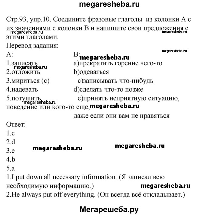 Подробный решебник (ГДЗ) по Английскому языку за 8 (восьмой) класс rainbow - готовый ответ часть 2. страница - 93. Авторы учебника: Афанасьева, Михеева, Баранова. Издательство: Дрофа 2016-2024.