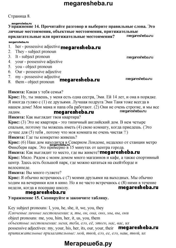 Подробный решебник (ГДЗ) по Английскому языку за 8 (восьмой) класс - готовый ответ страница - 8. Авторы учебника: Комарова, Ларионова, Макбет. Издательство: Русское слово 2016-2022.