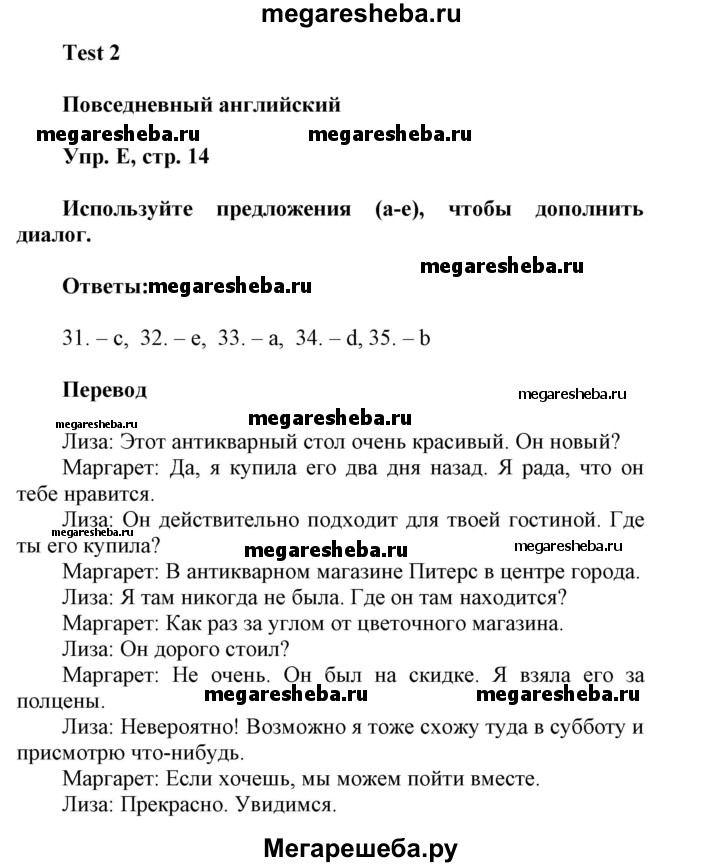 Подробный решебник (ГДЗ) по Английскому языку за 8 (восьмой) класс контрольные задания Spotlight - готовый ответ test 2 - E. Авторы учебника: Ваулина, Дули, Подоляко, Эванс. Издательство: Просвещение 2018-2024.