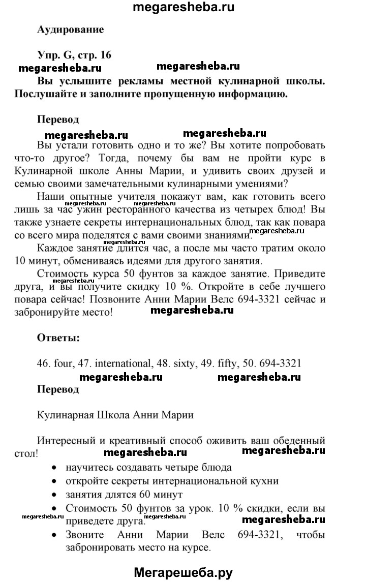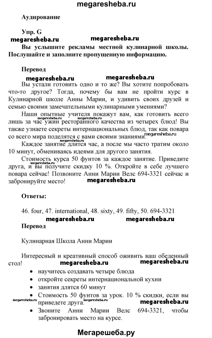 ГДЗ по английскому языку 8 класс Ваулина контрольные задания Spotlight test 2 - G