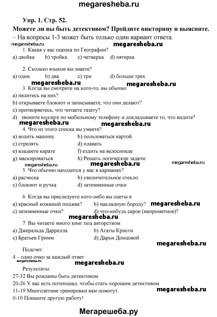 Подробный решебник (ГДЗ) по Английскому языку за 8 (восьмой) класс рабочая тетрадь New Millennium - готовый ответ страница - 52. Авторы учебника: Дворецкая, Кузеванова, Мичурина. Издательство: Титул 2017.