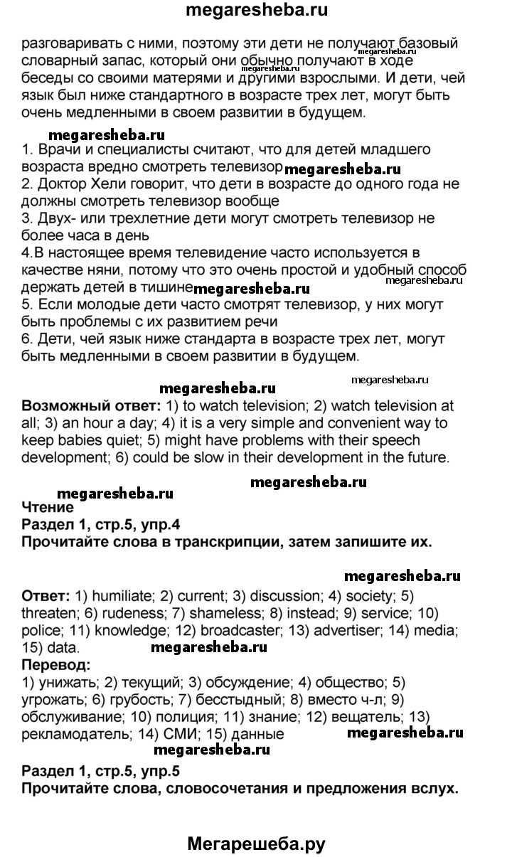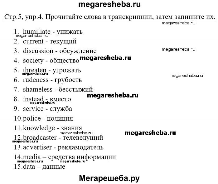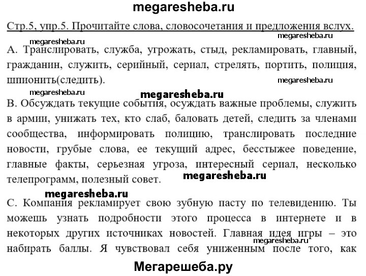 Подробный решебник (ГДЗ) по Английскому языку за 9 (девятый) класс рабочая тетрадь rainbow - готовый ответ страница - 5. Авторы учебника: Афанасьева, Михеева, Баранова. Издательство: Дрофа 2016.