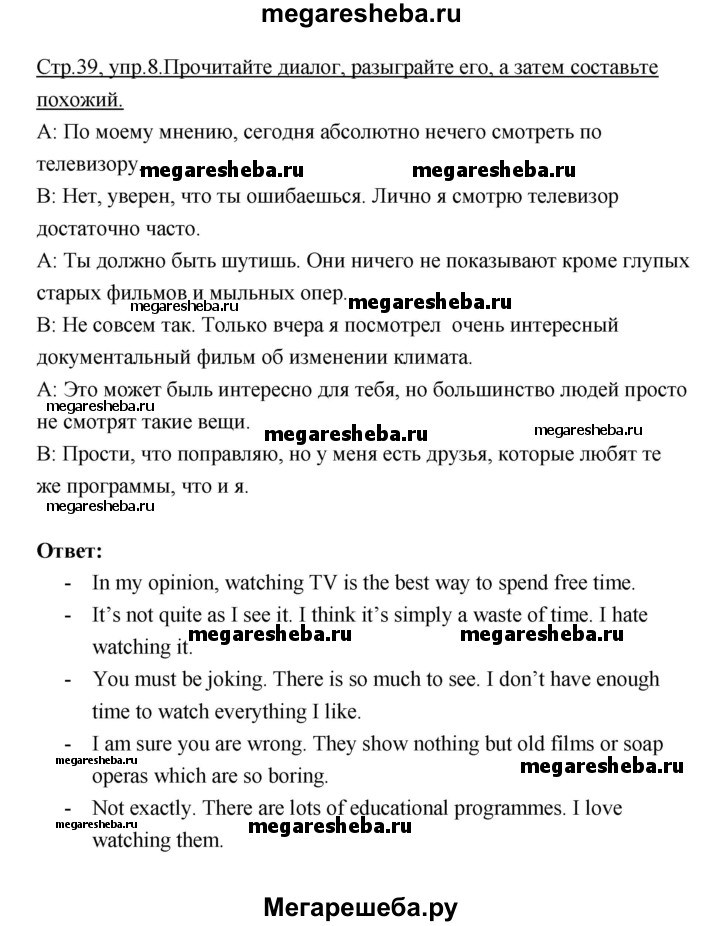 ГДЗ по английскому языку 9 класс Афанасьева rainbow unit 1 step 7 - 8