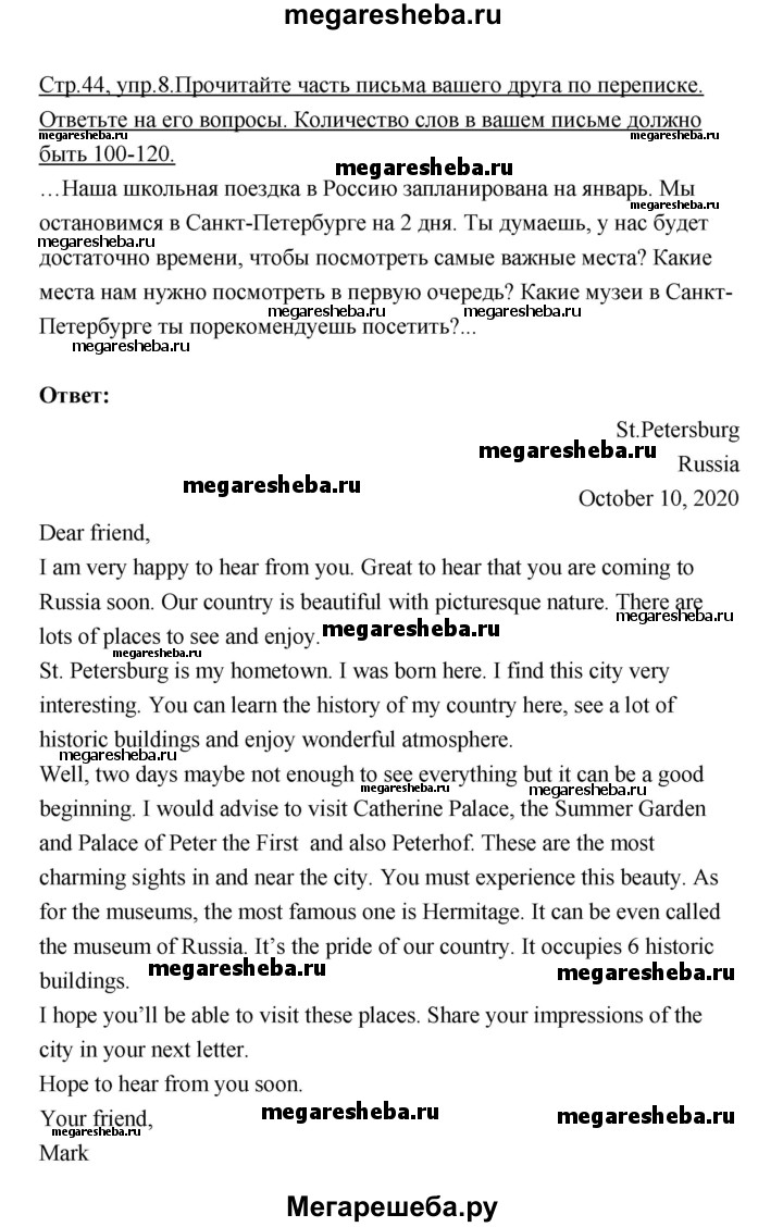 ГДЗ по английскому языку 9 класс Афанасьева rainbow unit 1 step 8 - 8