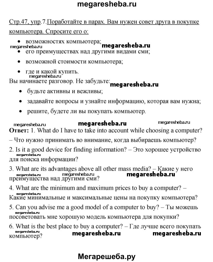 Подробный решебник (ГДЗ) по Английскому языку за 9 (девятый) класс rainbow - готовый ответ unit 1 step 9 - 7. Авторы учебника: Афанасьева, Михеева, Баранова. Издательство: Дрофа 2016.