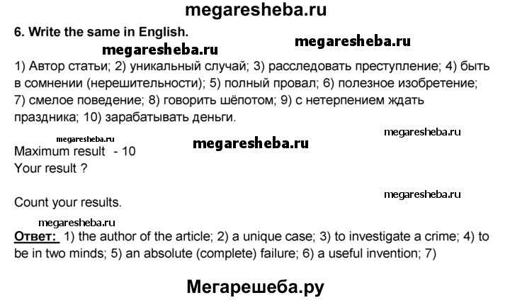 Подробный решебник (ГДЗ) по Английскому языку за 9 (девятый) класс rainbow - готовый ответ unit 2 step 10 - 6. Авторы учебника: Афанасьева, Михеева, Баранова. Издательство: Дрофа 2016.