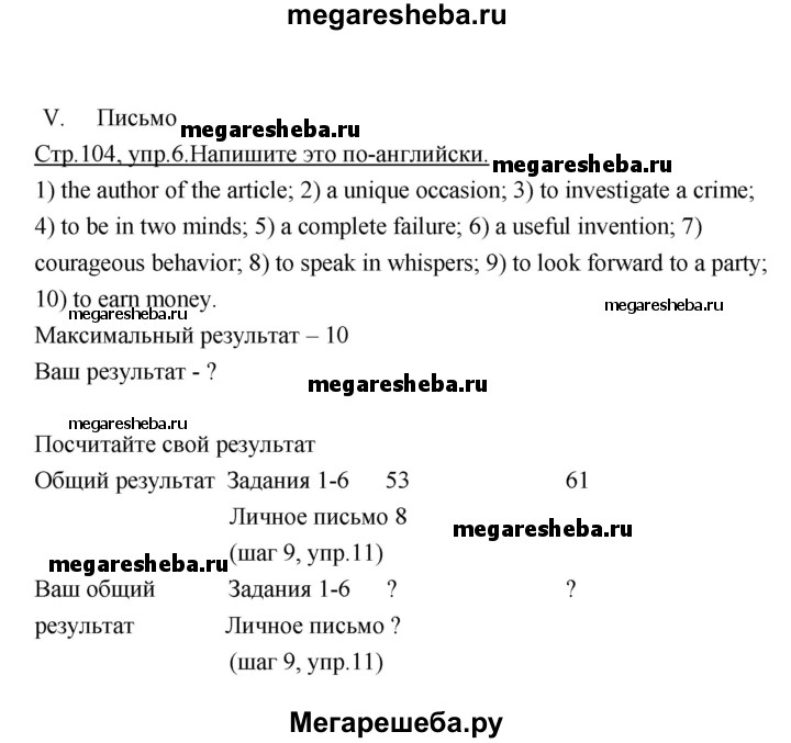 ГДЗ по английскому языку 9 класс Афанасьева rainbow unit 2 step 10 - 6