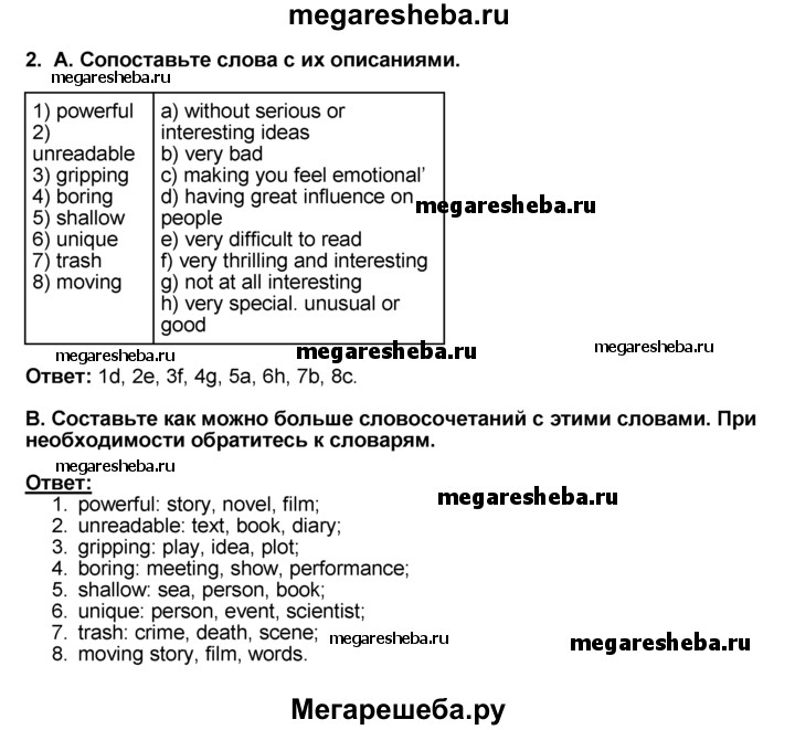 ГДЗ по английскому языку 9 класс Афанасьева rainbow unit 2 step 3 - 2
