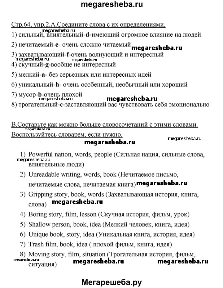 Подробный решебник (ГДЗ) по Английскому языку за 9 (девятый) класс rainbow - готовый ответ unit 2 step 3 - 2. Авторы учебника: Афанасьева, Михеева, Баранова. Издательство: Дрофа 2016.