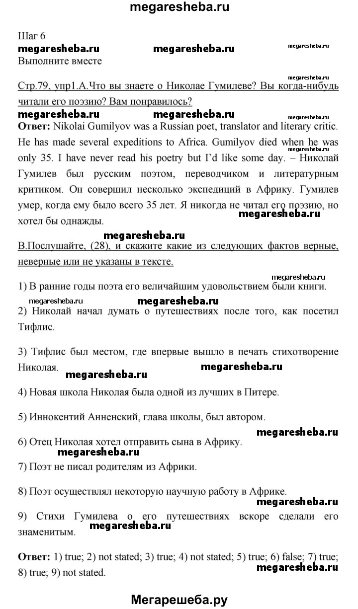 Подробный решебник (ГДЗ) по Английскому языку за 9 (девятый) класс rainbow - готовый ответ unit 2 step 6 - 1. Авторы учебника: Афанасьева, Михеева, Баранова. Издательство: Дрофа 2016.