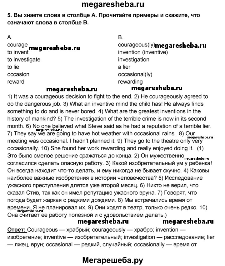 Подробный решебник (ГДЗ) по Английскому языку за 9 (девятый) класс rainbow - готовый ответ unit 2 step 7 - 5. Авторы учебника: Афанасьева, Михеева, Баранова. Издательство: Дрофа 2016.