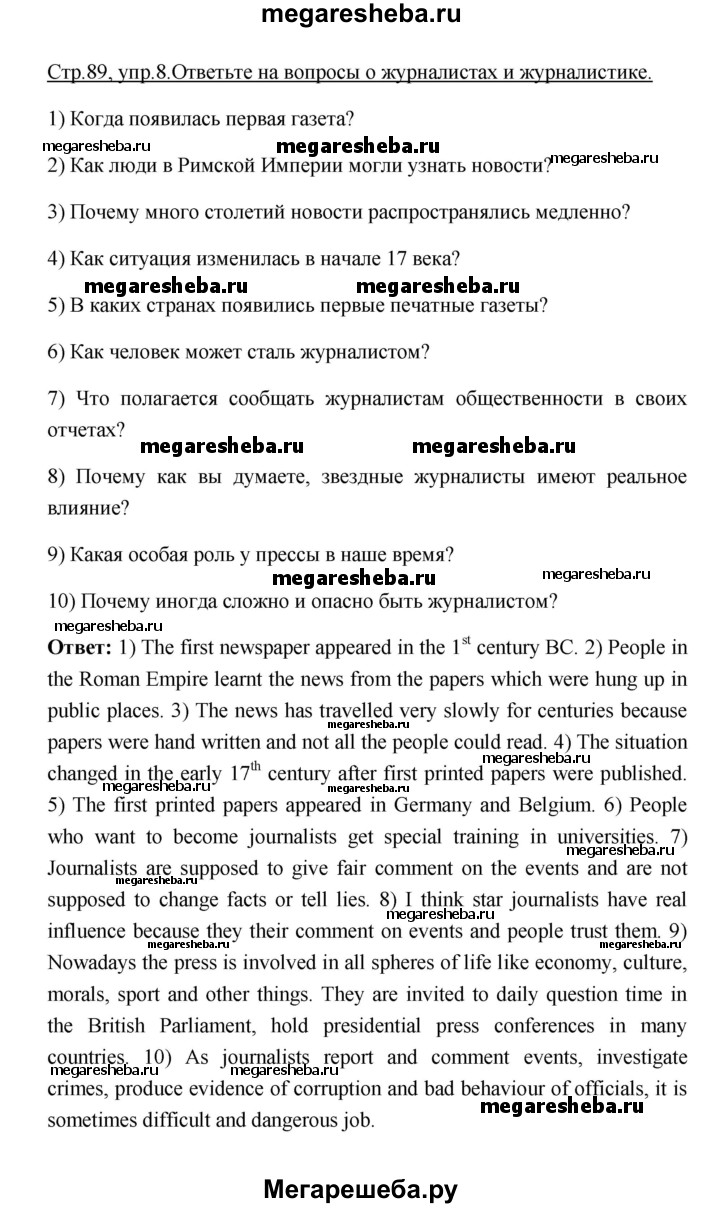 ГДЗ по английскому языку 9 класс Афанасьева rainbow unit 2 step 7 - 8