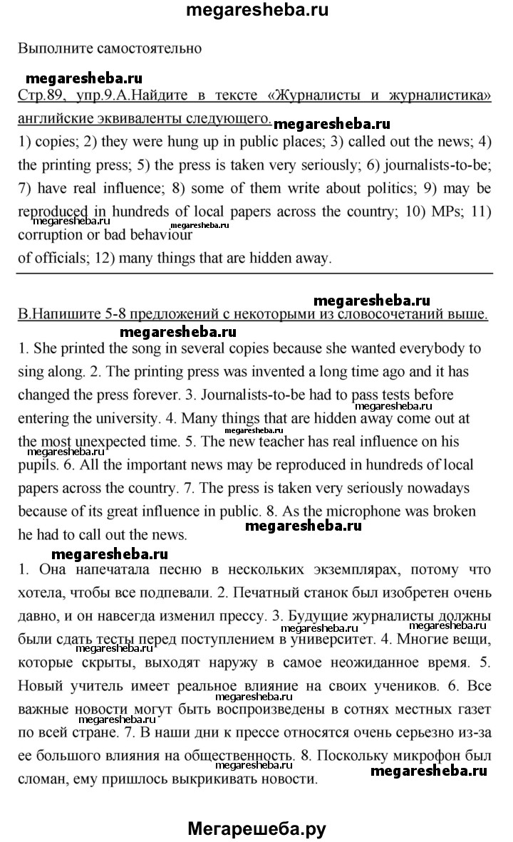 ГДЗ по английскому языку 9 класс Афанасьева rainbow unit 2 step 7 - 9