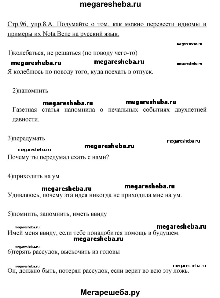 ГДЗ по английскому языку 9 класс Афанасьева rainbow unit 2 step 8 - 8