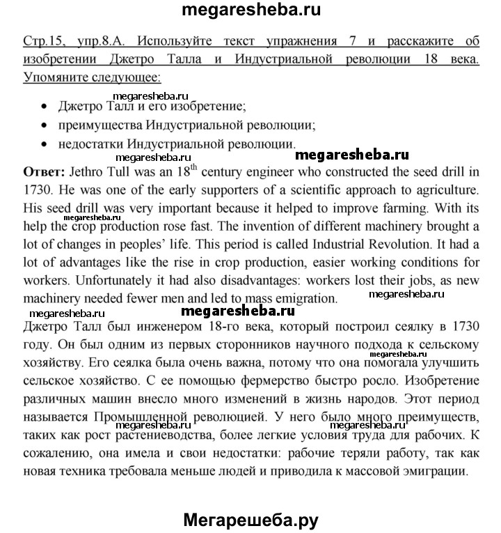Подробный решебник (ГДЗ) по Английскому языку за 9 (девятый) класс rainbow - готовый ответ unit 3 step 2 - 8. Авторы учебника: Афанасьева, Михеева, Баранова. Издательство: Дрофа 2016.