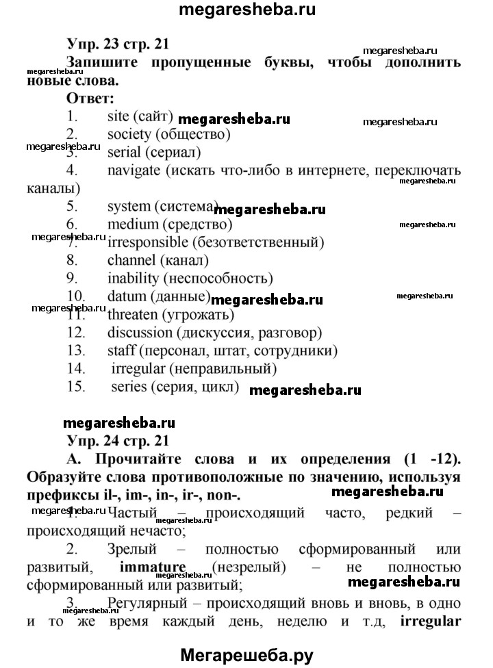 ГДЗ по английскому языку 9 класс Афанасьева лексико-грамматический практикум Rainbow страница - 21