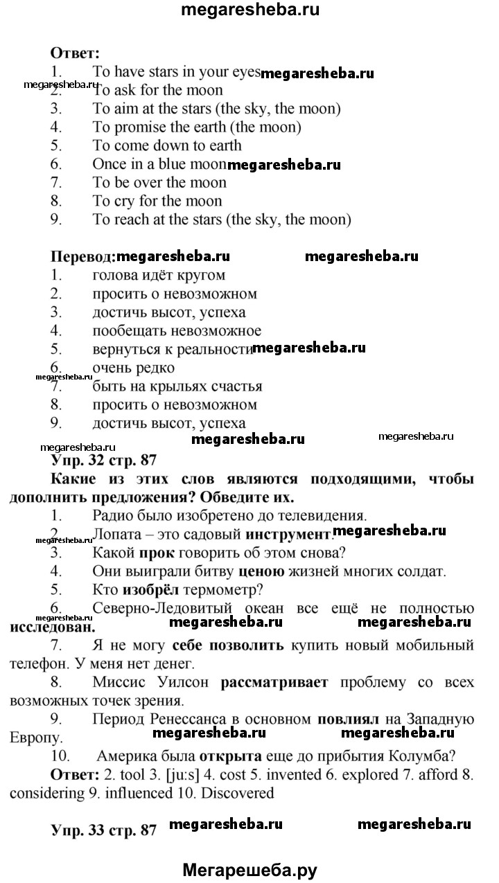 Подробный решебник (ГДЗ) по Английскому языку за 9 (девятый) класс лексико-грамматический практикум Rainbow - готовый ответ страница - 87. Авторы учебника: Афанасьева, Михеева, Баранова. Издательство: Дрофа 2017.