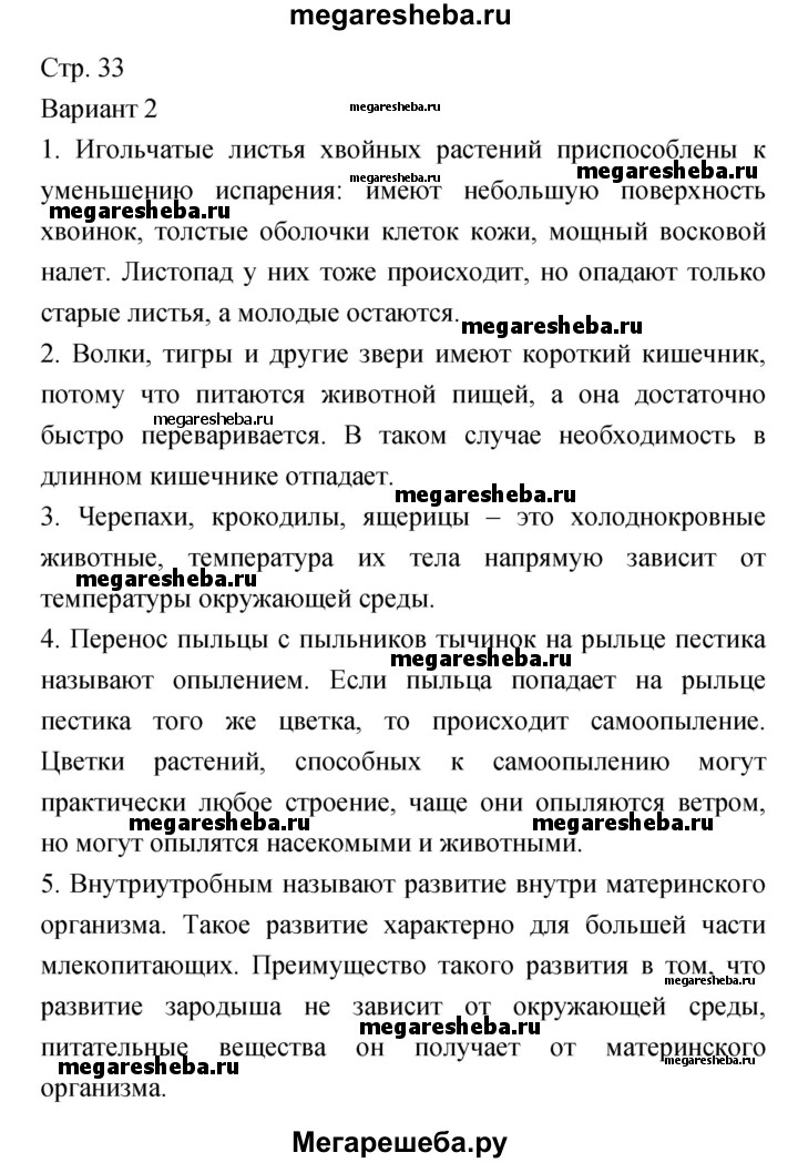 Подробный решебник (ГДЗ) по Биологии за 5‐6 (пятый‐шестой) класс тетрадь-экзаменатор - готовый ответ страница - 33. Авторы учебника: Сухорукова, Кучменко. Издательство: Просвещение 2017.