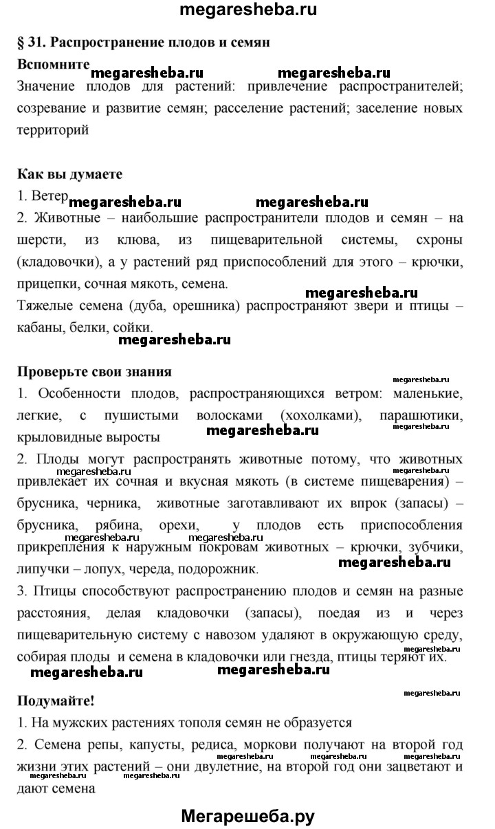 Подробный решебник (ГДЗ) по Биологии за 6 (шестой) класс - готовый ответ параграф - 31. Авторы учебника: Исаева, Романова. Издательство: Русское слово 2017.