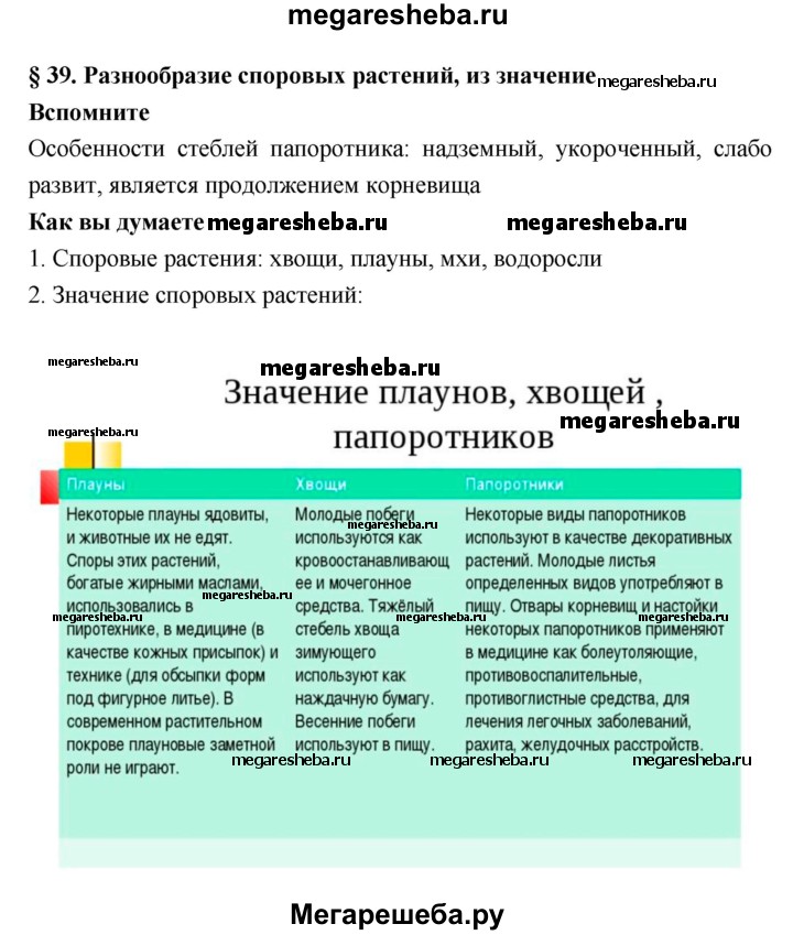 ГДЗ по биологии 6 класс Исаева параграф - 39