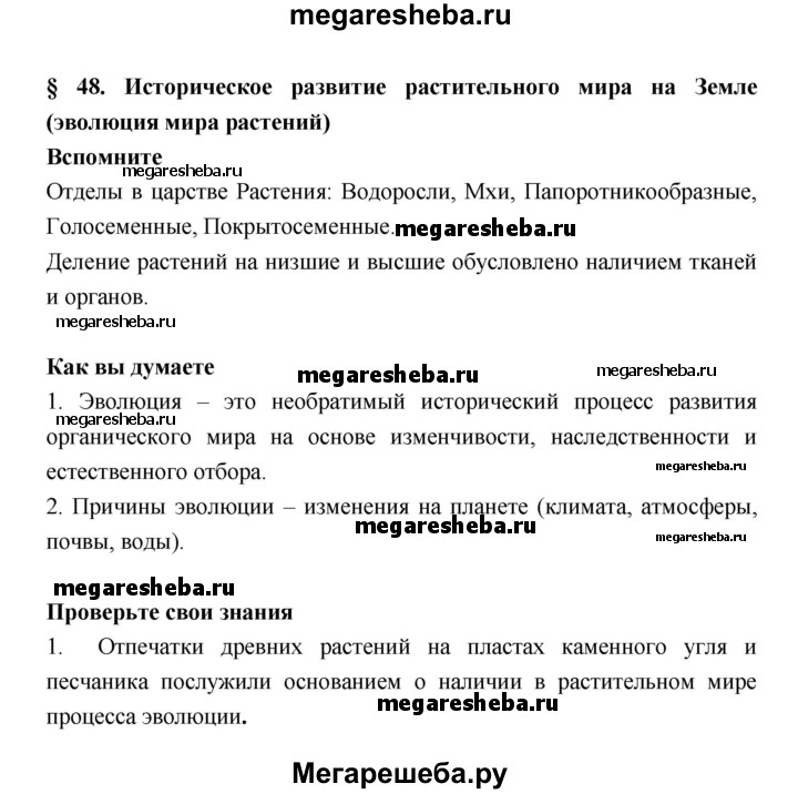 ГДЗ по биологии 6 класс Исаева параграф - 48