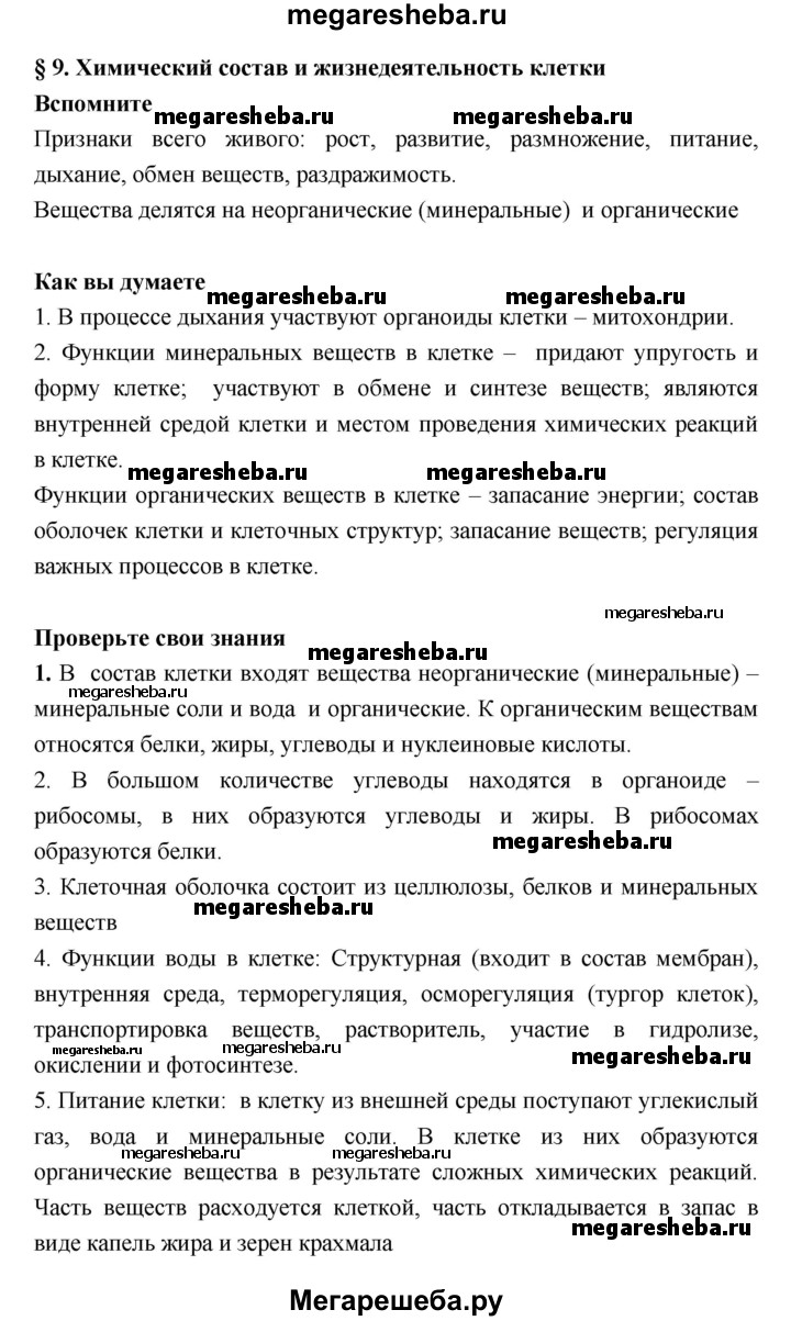 ГДЗ по биологии 6 класс Исаева параграф - 9
