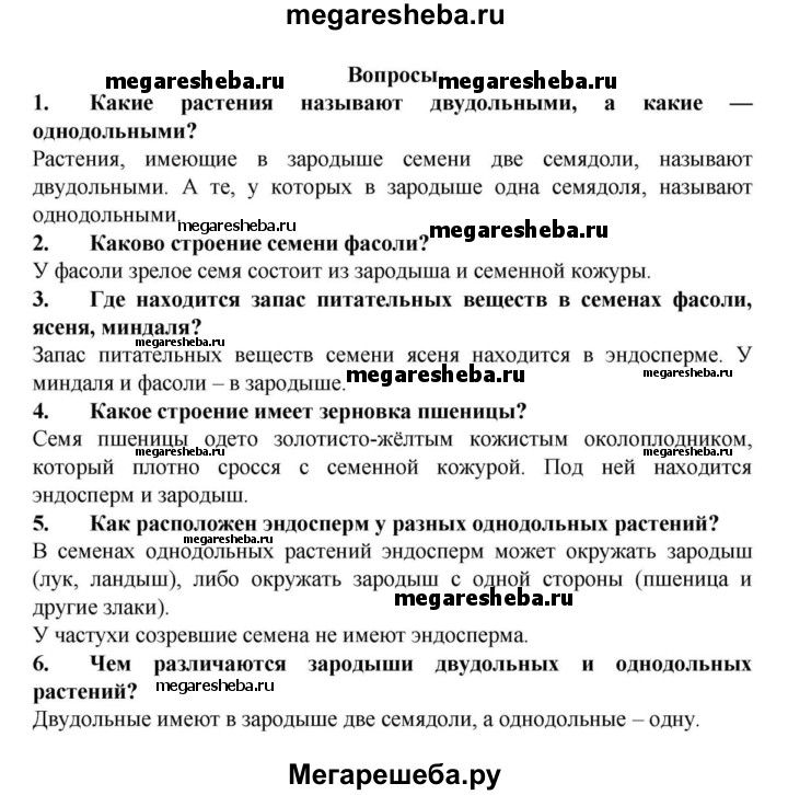 Подробный решебник (ГДЗ) по Биологии за 6 (шестой) класс - готовый ответ 1§ - Вопросы. Авторы учебника: Пасечник. Издательство: Дрофа 2015.