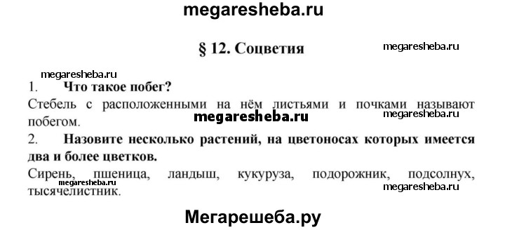 Подробный решебник (ГДЗ) по Биологии за 6 (шестой) класс - готовый ответ 12§ - Вопросы в начале параграфа. Авторы учебника: Пасечник. Издательство: Дрофа 2015.