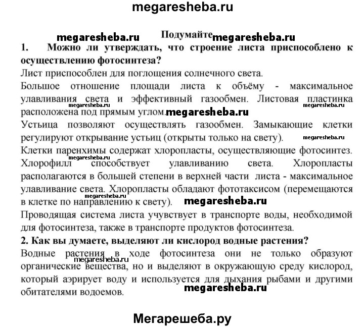Подробный решебник (ГДЗ) по Биологии за 6 (шестой) класс - готовый ответ 16§ - Подумайте. Авторы учебника: Пасечник. Издательство: Дрофа 2015.