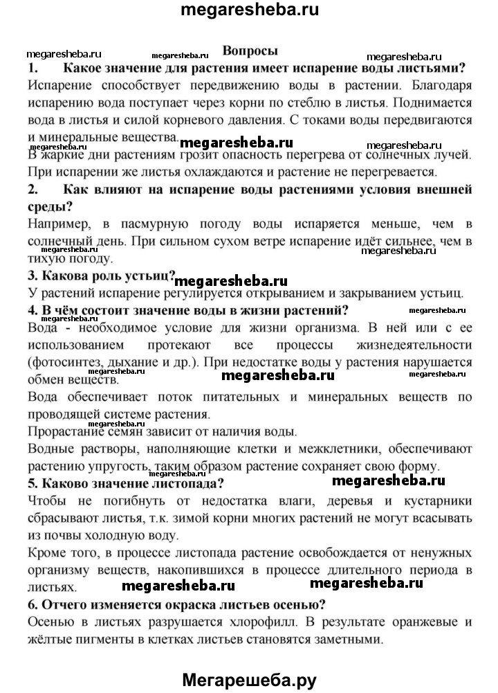 Подробный решебник (ГДЗ) по Биологии за 6 (шестой) класс - готовый ответ 18§ - Вопросы. Авторы учебника: Пасечник. Издательство: Дрофа 2015.