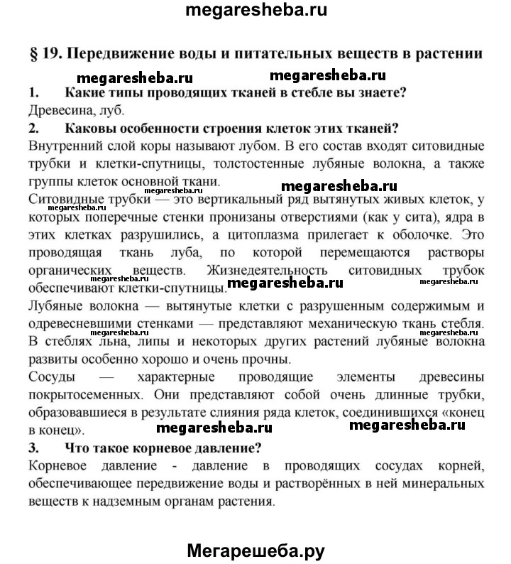 Подробный решебник (ГДЗ) по Биологии за 6 (шестой) класс - готовый ответ 19§ - Вопросы в начале параграфа. Авторы учебника: Пасечник. Издательство: Дрофа 2015.