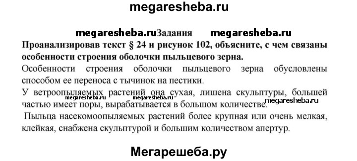 Подробный решебник (ГДЗ) по Биологии за 6 (шестой) класс - готовый ответ 24§ - Задания. Авторы учебника: Пасечник. Издательство: Дрофа 2015.