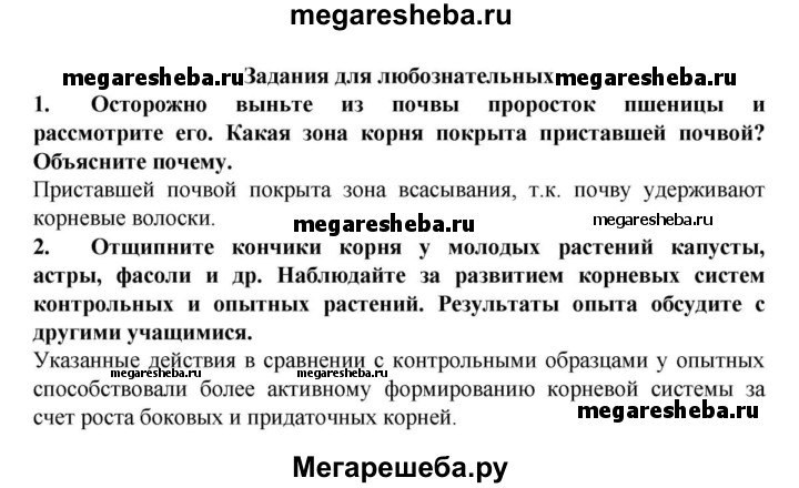 Подробный решебник (ГДЗ) по Биологии за 6 (шестой) класс - готовый ответ 3§ - Задания для любознательных. Авторы учебника: Пасечник. Издательство: Дрофа 2015.