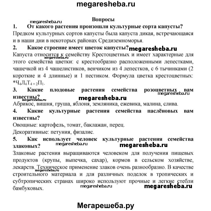 Подробный решебник (ГДЗ) по Биологии за 6 (шестой) класс - готовый ответ 30§ - Вопросы. Авторы учебника: Пасечник. Издательство: Дрофа 2015.