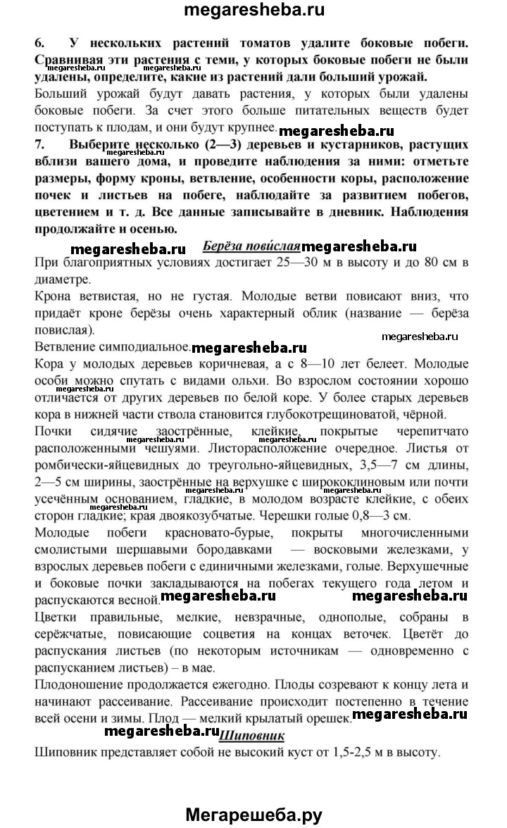 Подробный решебник (ГДЗ) по Биологии за 6 (шестой) класс - готовый ответ 32§ - Летние задания. Авторы учебника: Пасечник. Издательство: Дрофа 2015.