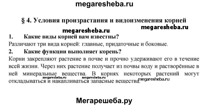 Подробный решебник (ГДЗ) по Биологии за 6 (шестой) класс - готовый ответ 4§ - Вопросы в начале параграфа. Авторы учебника: Пасечник. Издательство: Дрофа 2015.