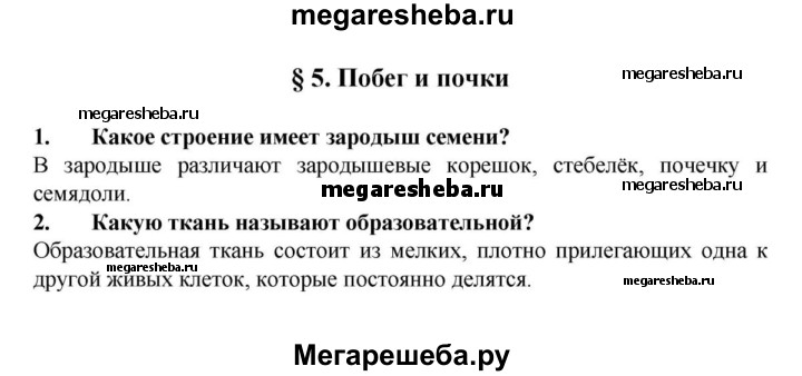 Подробный решебник (ГДЗ) по Биологии за 6 (шестой) класс - готовый ответ 5§ - Вопросы в начале параграфа. Авторы учебника: Пасечник. Издательство: Дрофа 2015.