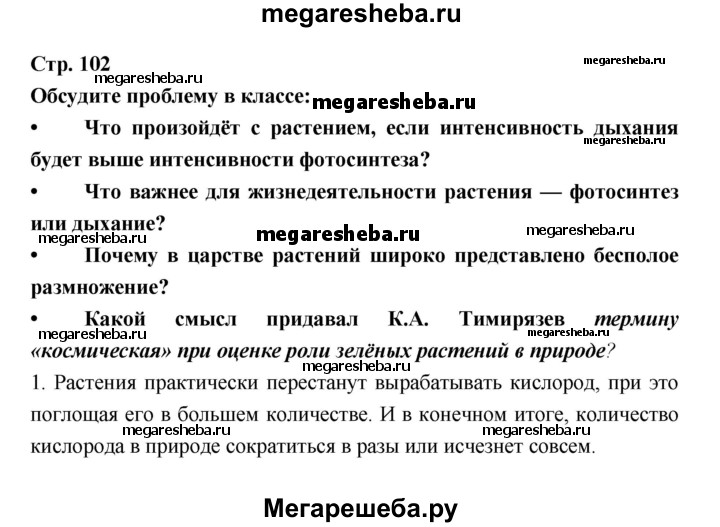 Подробный решебник (ГДЗ) по Биологии за 6 (шестой) класс - готовый ответ страница - 102. Авторы учебника: Пономарева, Корнилова, Кучменко. Издательство: Вентана-граф 2018.