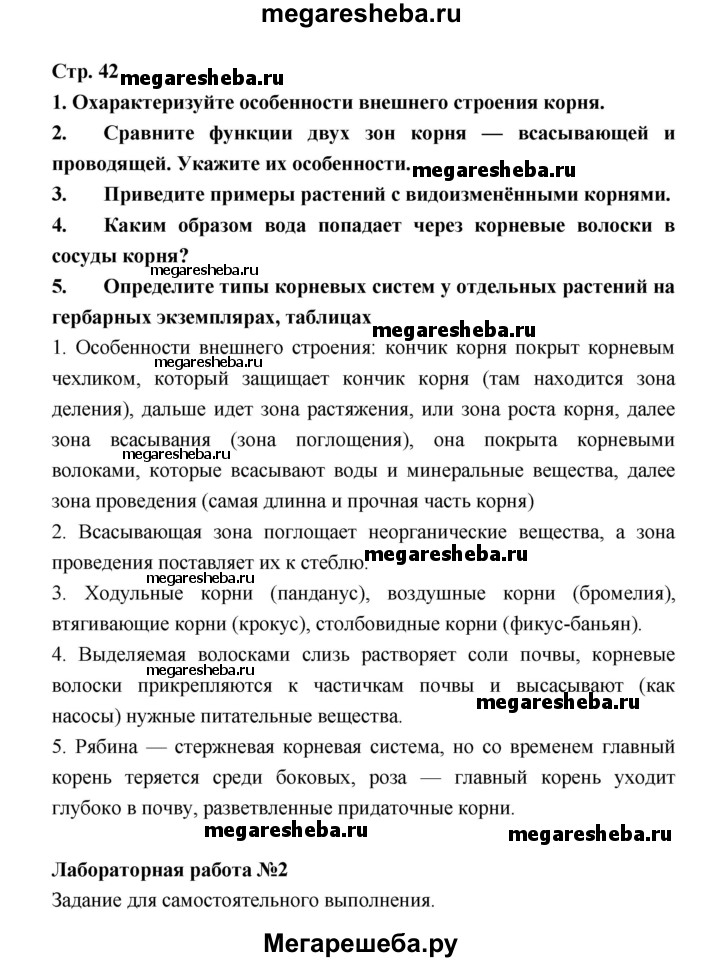 Подробный решебник (ГДЗ) по Биологии за 6 (шестой) класс - готовый ответ страница - 42. Авторы учебника: Пономарева, Корнилова, Кучменко. Издательство: Вентана-граф 2018.