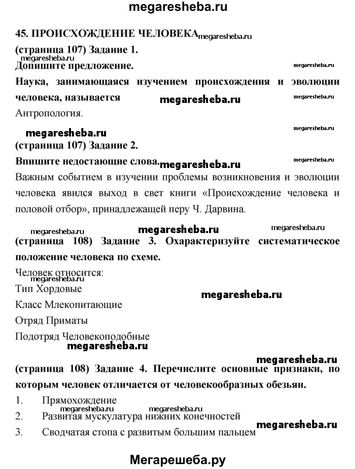 ГДЗ по биологии 9 класс Цибулевский рабочая тетрадь параграф - 45 (45.46)