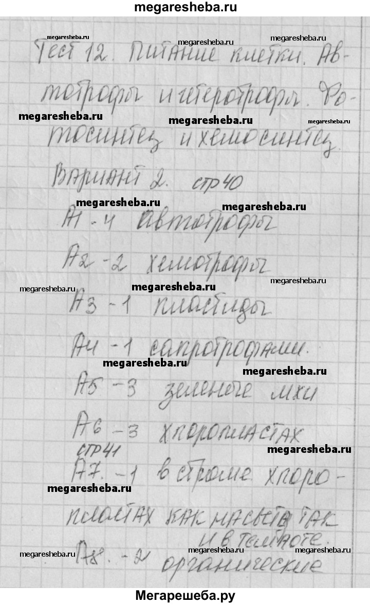 Подробный решебник (ГДЗ) по Биологии за 9 (девятый) класс контрольно-измерительные материалы - готовый ответ тест 12. вариант - 2. Авторы учебника: Богданов. Издательство: ВАКО 2017-2022.