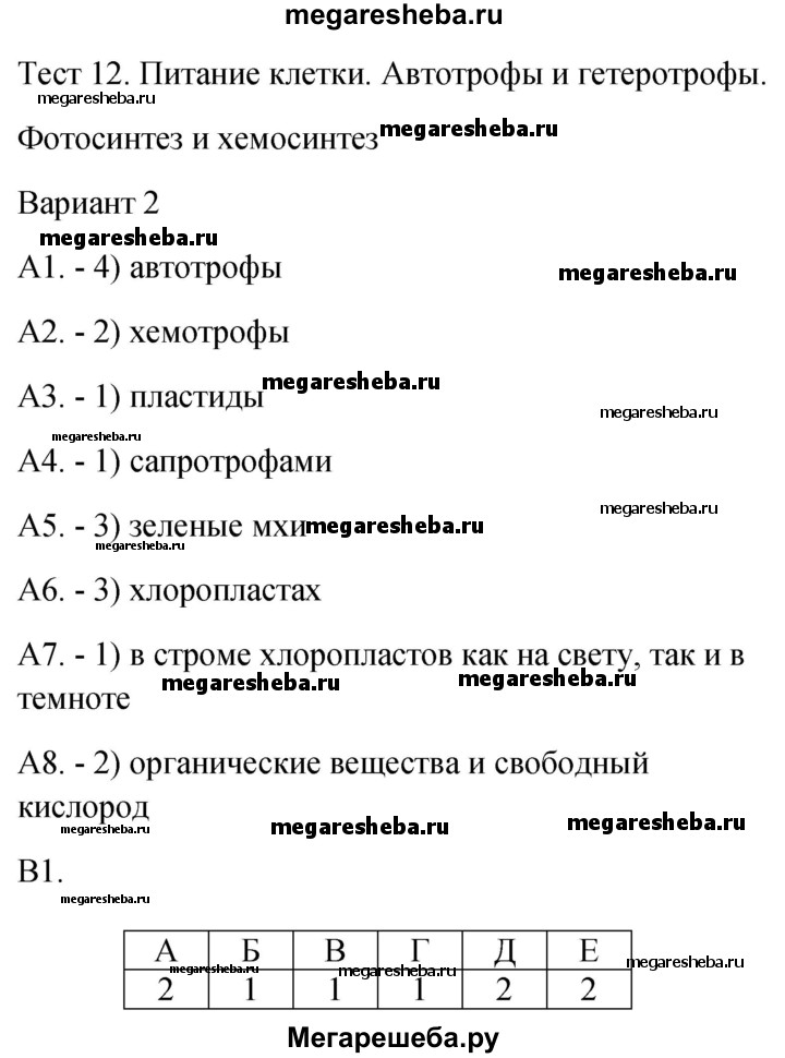 ГДЗ по биологии 9 класс Богданов контрольно-измерительные материалы тест 12. вариант - 2