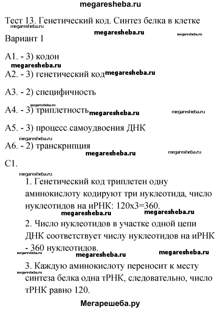 Подробный решебник (ГДЗ) по Биологии за 9 (девятый) класс контрольно-измерительные материалы - готовый ответ тест 13. вариант - 1. Авторы учебника: Богданов. Издательство: ВАКО 2017-2022.