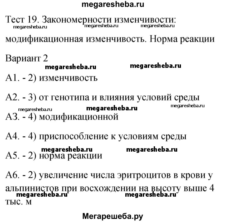Подробный решебник (ГДЗ) по Биологии за 9 (девятый) класс контрольно-измерительные материалы - готовый ответ тест 19. вариант - 2. Авторы учебника: Богданов. Издательство: ВАКО 2017-2022.