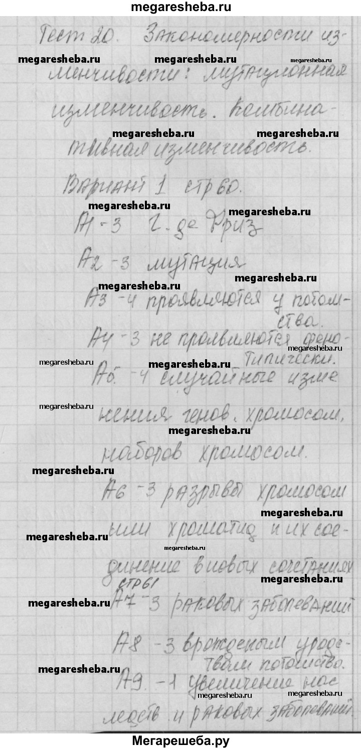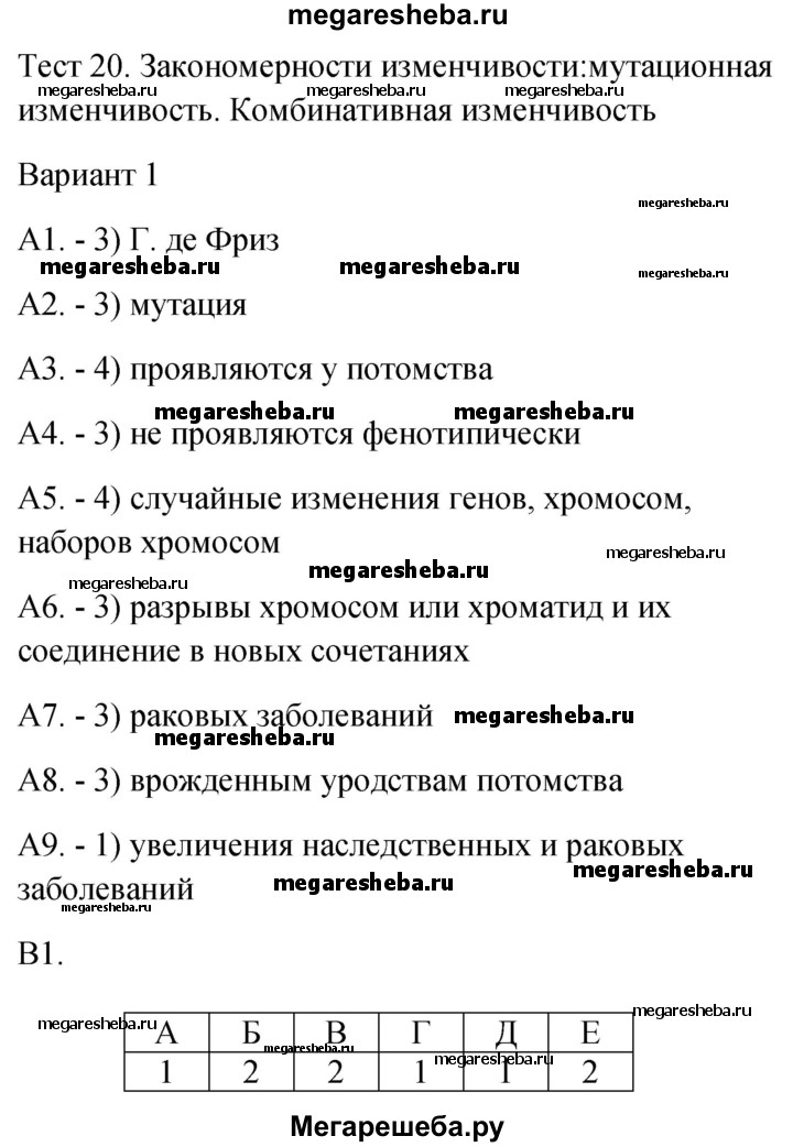 ГДЗ по биологии 9 класс Богданов контрольно-измерительные материалы тест 20. вариант - 1