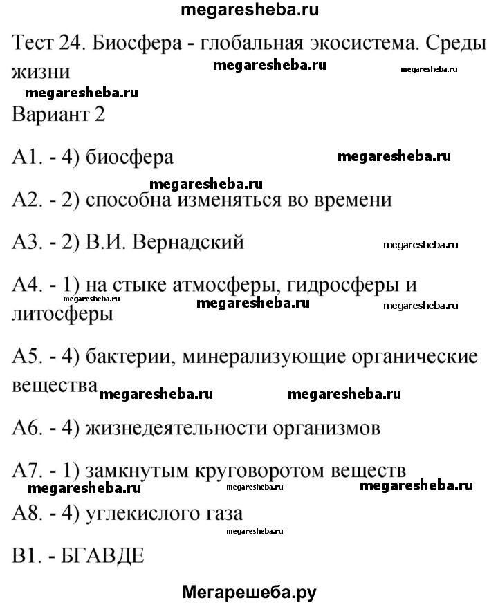 ГДЗ по биологии 9 класс Богданов контрольно-измерительные материалы тест 24. вариант - 2