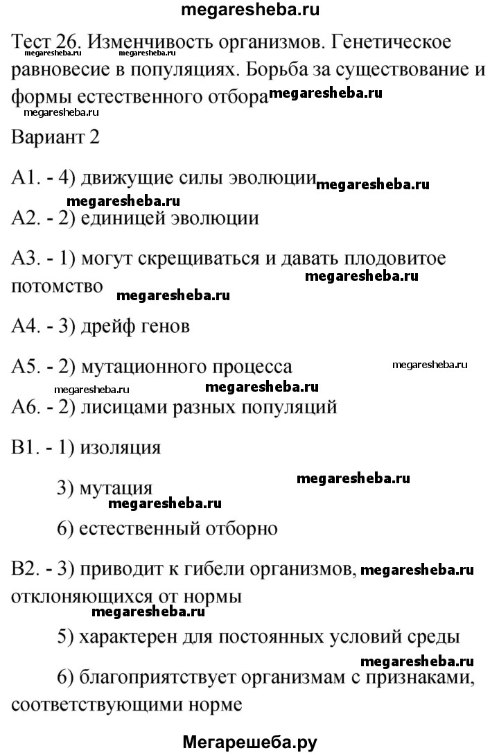 ГДЗ по биологии 9 класс Богданов контрольно-измерительные материалы тест 26. вариант - 2