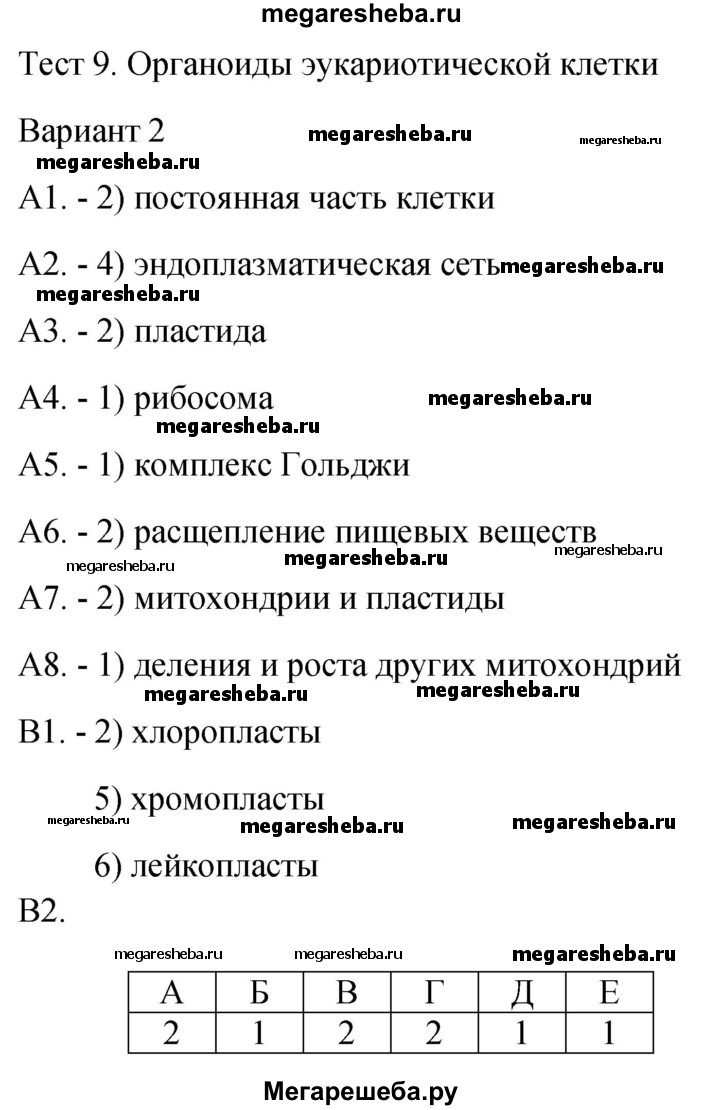 Подробный решебник (ГДЗ) по Биологии за 9 (девятый) класс контрольно-измерительные материалы - готовый ответ тест 9. вариант - 2. Авторы учебника: Богданов. Издательство: ВАКО 2017-2022.