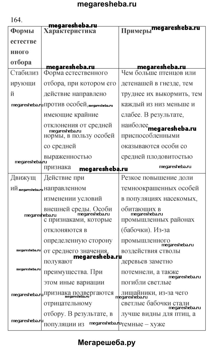Подробный решебник (ГДЗ) по Биологии за 9 (девятый) класс рабочая тетрадь - готовый ответ номер - 164. Авторы учебника: Пасечник, Швецов. Издательство: Дрофа 2019.