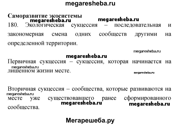 Подробный решебник (ГДЗ) по Биологии за 9 (девятый) класс рабочая тетрадь - готовый ответ номер - 180. Авторы учебника: Пасечник, Швецов. Издательство: Дрофа 2019.